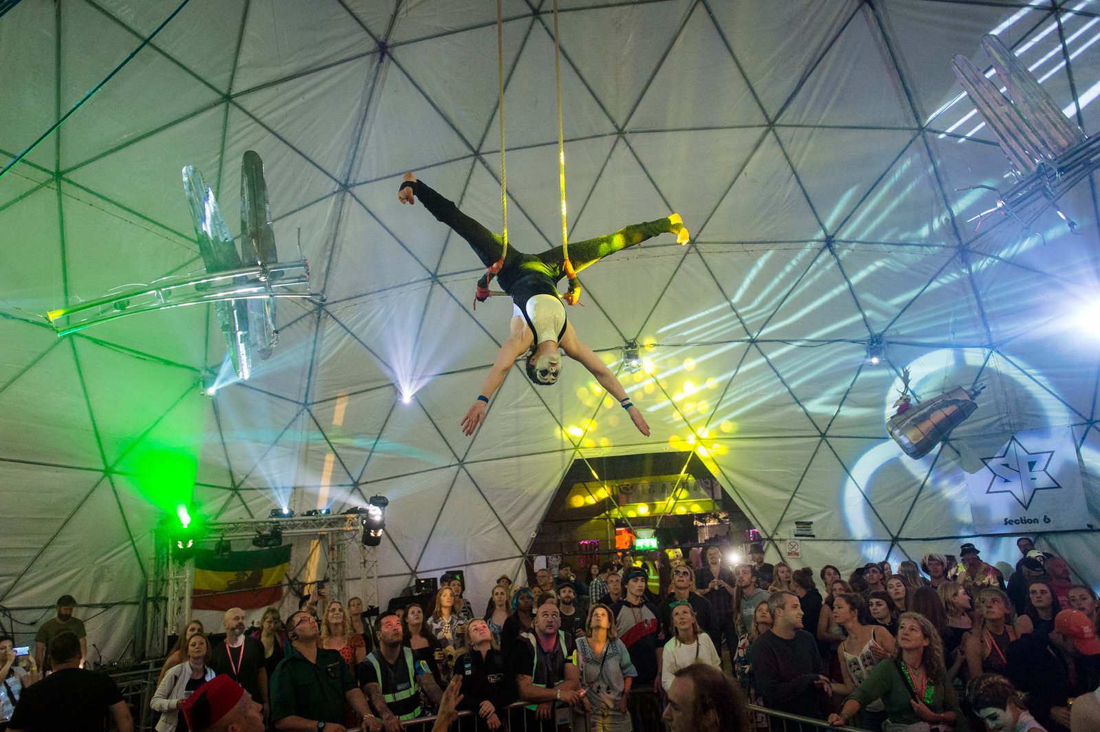 Other notable stages include The Bay: a beach hut scene with real sand, hunky lifeguards and Balearic tech house beats, The Larch: home to up and coming bands in the day and some great late night dance acts if you aren’t feeling the hedonism of the Hedge. However, the stage that truly stood out to me was Area 51. Set in a spherical structure, acrobats and light shows accompany the late night drum and bass that throbs throughout. A true testament to Blissfields’ creative routes.