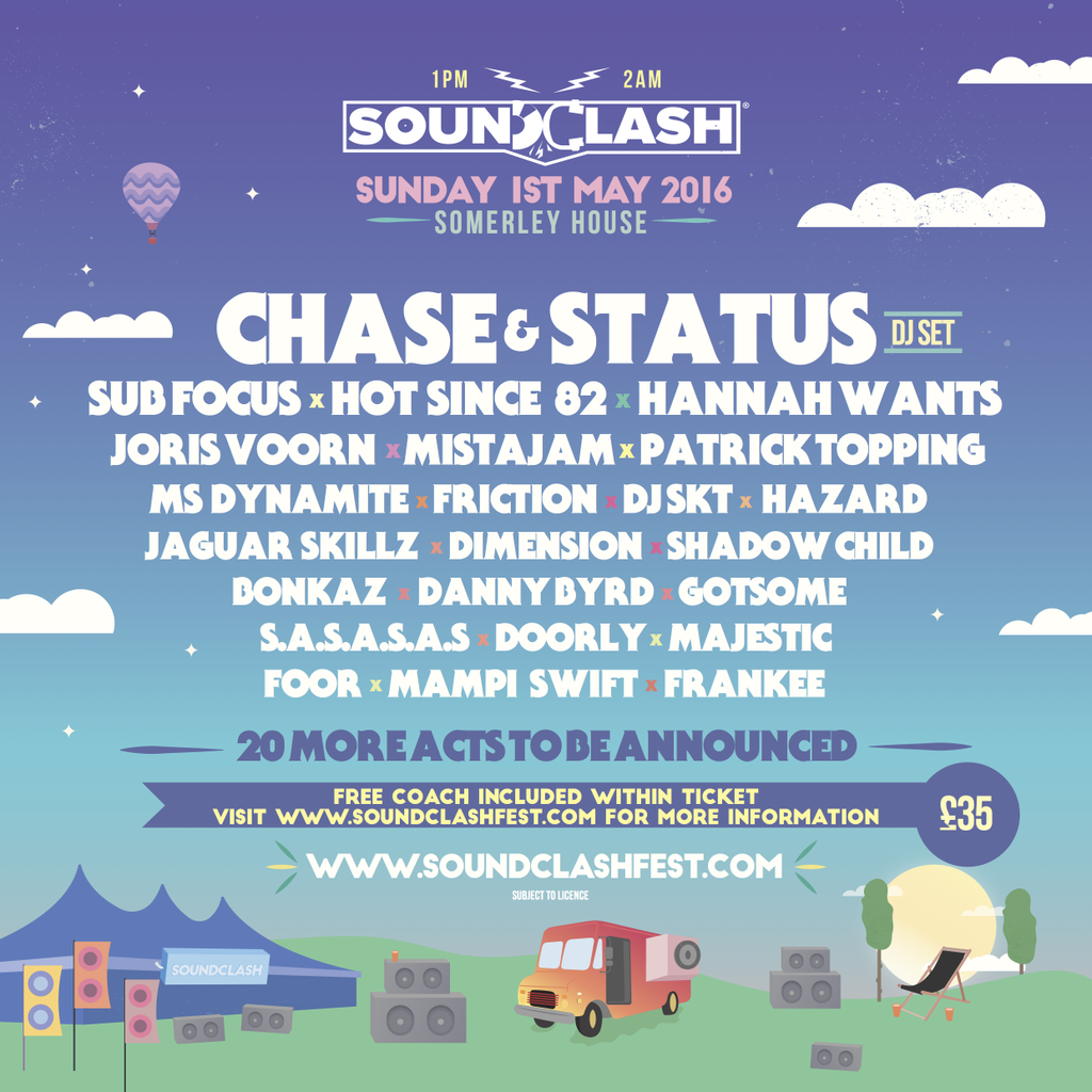 Drum and Bass pioneers Chase & Status have been announced as headliners for this year’s Soundclash Festival near Southampton. The duo along with MC Rage return after taking 2015 off, focusing on their upcoming fourth album, as well performing live with Rebel Sound – the duo’s side project alongside David Rodigan, Shy FX and Rage.