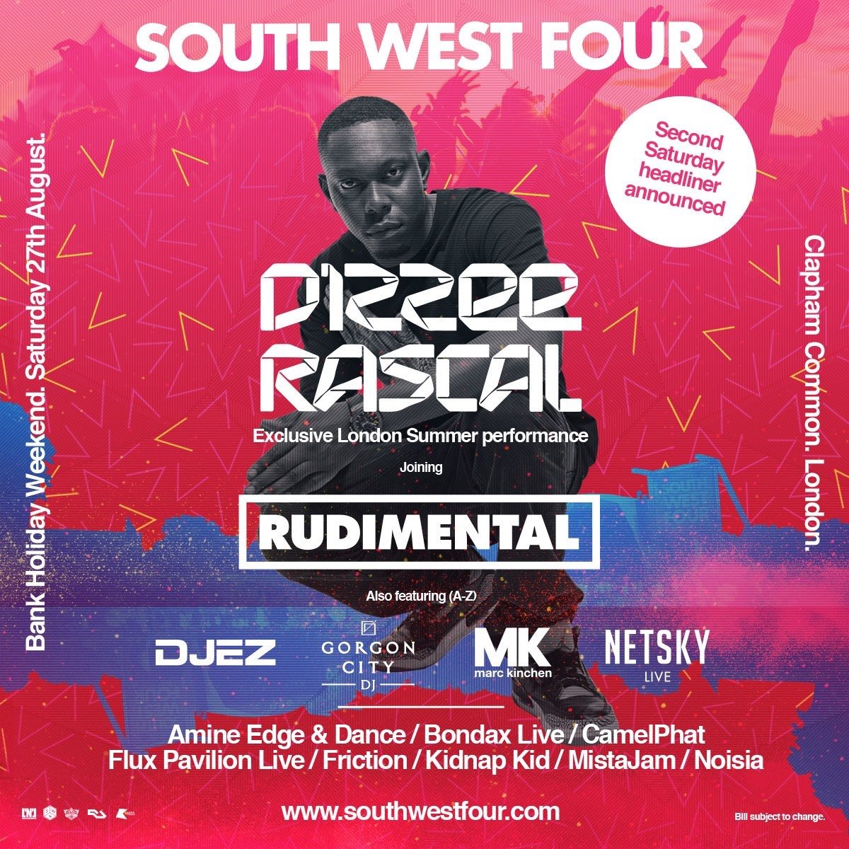 imageLondon rapper Dizzee Rascal has been announced as the second Saturday night headliner for this year’s South West 4 Festival.