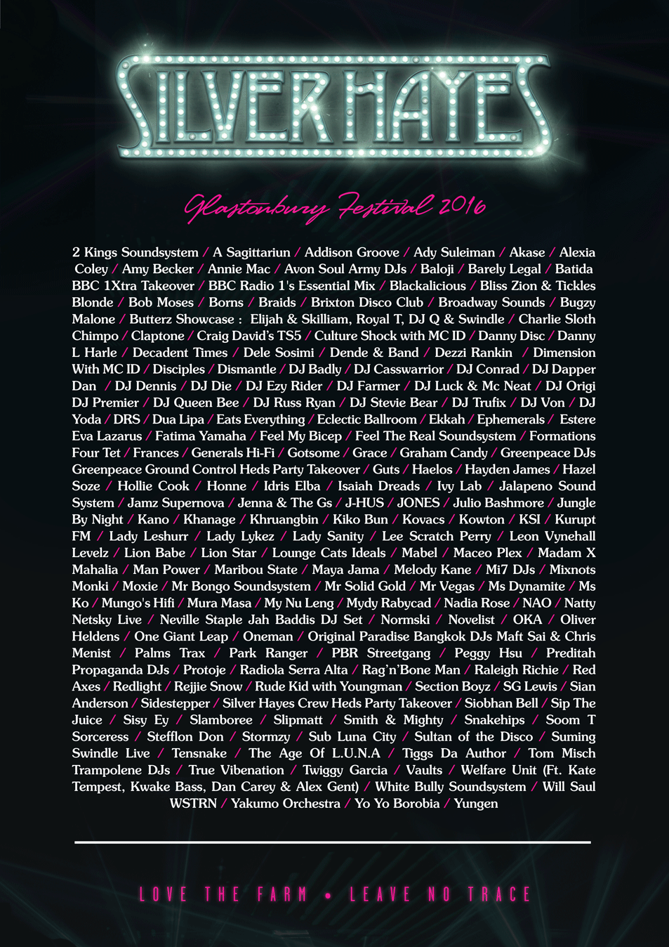 Glastonbury Announces 2016 Silver Hayes Lineup