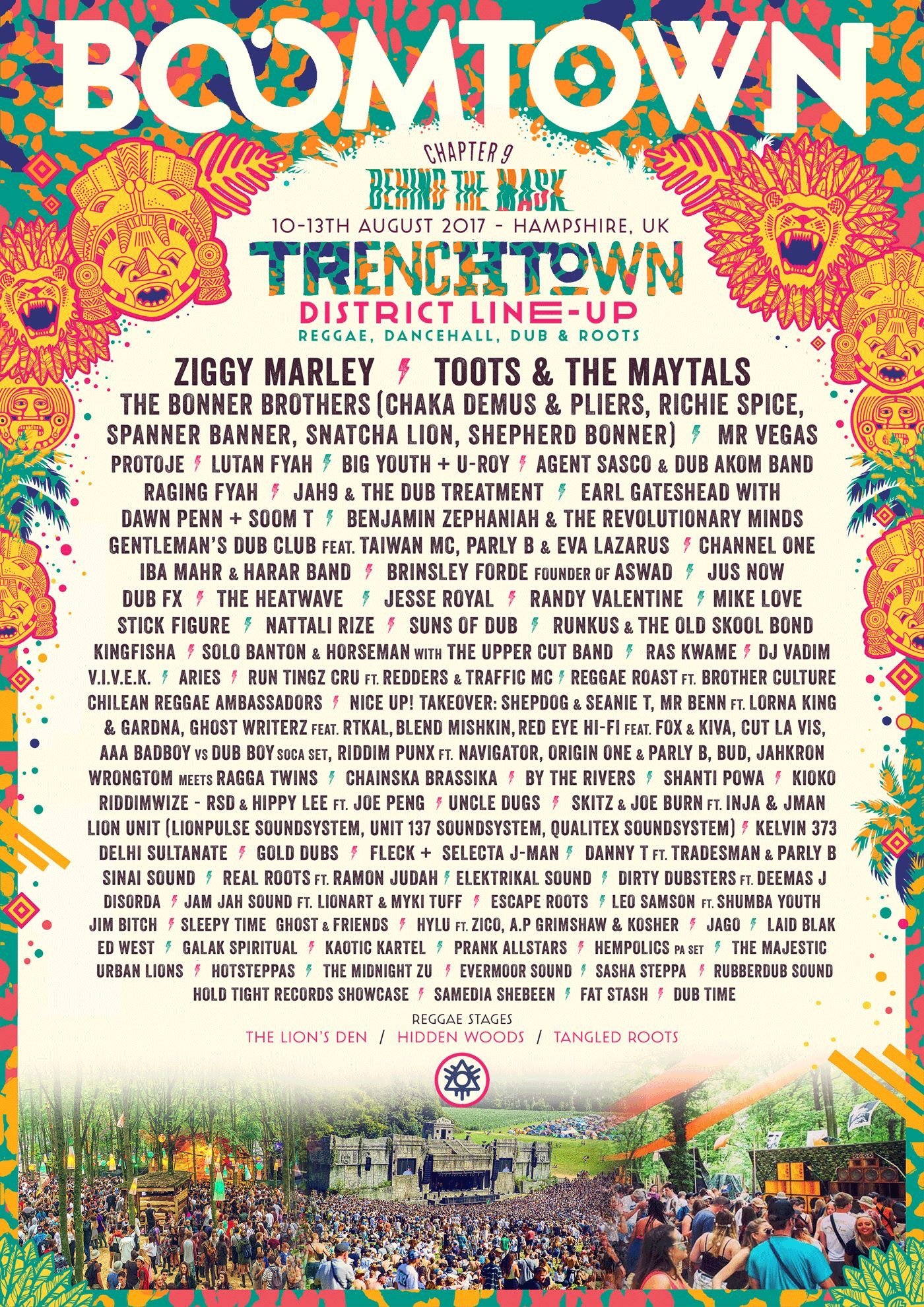 Yet another Boomtown lineup, this time in the form of TrenchTown. Ziggy Marley and Toots & The Maytals take headline spots with three reggae stages as well as Boomtown’s infamous Lion’s Den. More districts will be revealing their lineups soon.IMG_1951