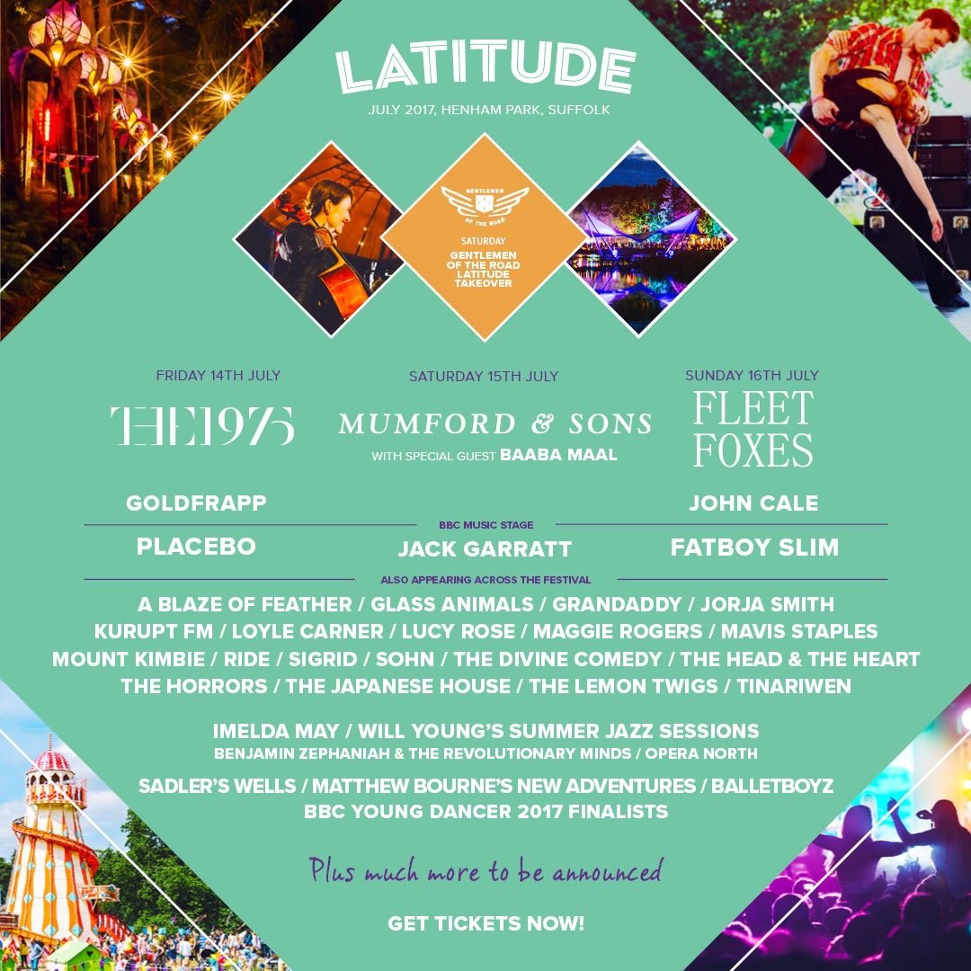 This year Latitude will see British indie pop band The 1975, Mumford & Sons with Baaba Maal and Fleet Foxes headline. Placebo, Jack Garratt and Fatboy Slim will also play.