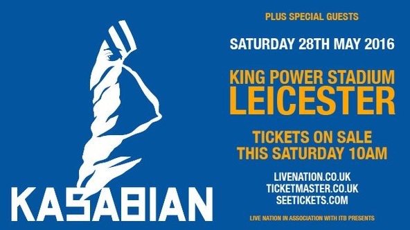 Leicester Rock band Kasabian have announced a huge hometown show at the King Power Stadium, home of Leicester City Football Club, of whom are on course to remarkably win the Premier League.