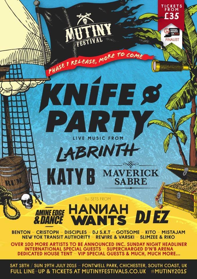 Knife Party released debut studio album, Abandon Ship in November last year and have spent the beginning of the year touring in America. The Mutiny appearance, however, will be a rare UK show with only two other festivals (Wireless and We Are Fstvl) and no headline gigs currently scheduled.
