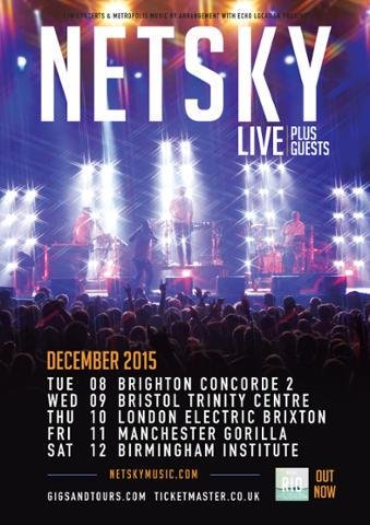 Netsky Live will visit Brighton, Bristol, London, Manchester and Birmingham between Tuesday 8th and Saturday 12th December.