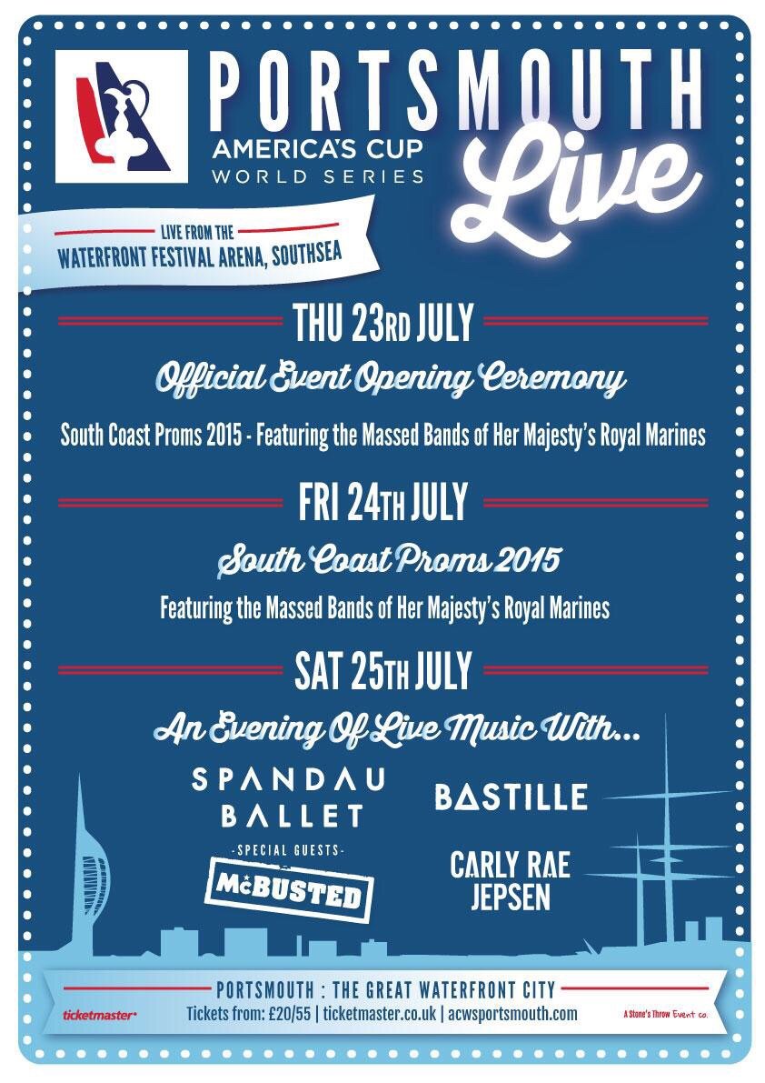 The concert is being held at Southsea Common on Saturday 25th July as part of the 35th America’s Cup World Series Sailing, which is taking place off the Portsmouth coast.