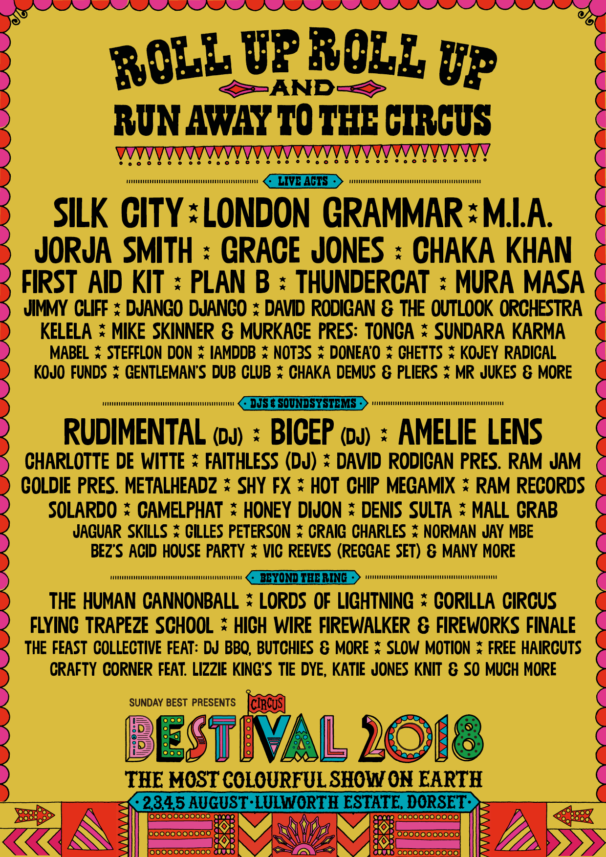 In an attempt to reignite Bestival’s past fire organiser Rob da Bank has announced the festival’s annual theme as ‘Circus’ and a tiptop lineup to go alongside it. The Bestival team have also announced that the festival would now no longer hold its place as the end marker for the UK festival season but would instead take place on the first weekend of August. Bestival’s Friday night headliner is a UK festival exclusive; Mark Ronson and Diplo’s new project known as Silk City. Saturday will see indie pop trio London Grammar head the bill with female rapper M.I.A closing on Sunday evening. Other big-name artists include producer Mura Masa, singer/songwriter Grace Jones and rapper Plan B. Not to mention the wealth of dance music that is sure to be on offer.